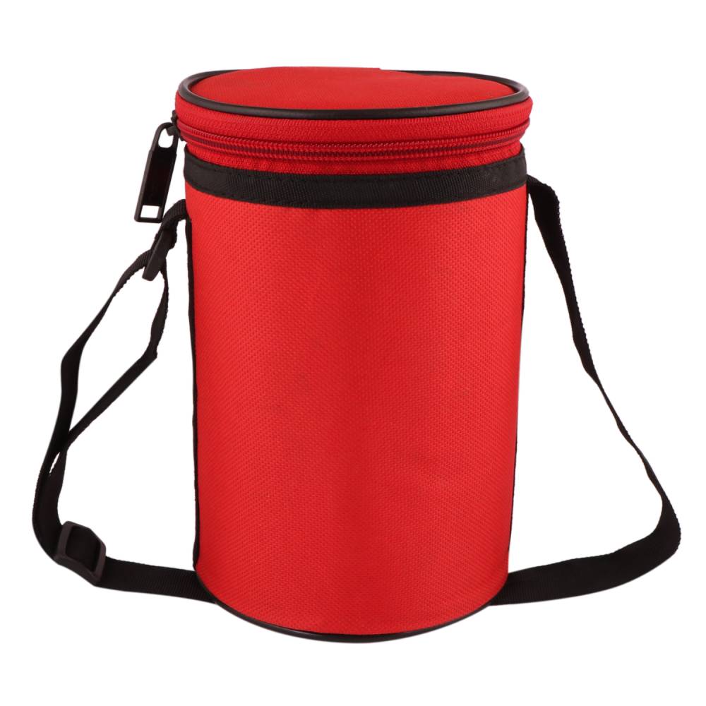 Packed inside an insulated round lunch bag to help retain food temperature for longer hours